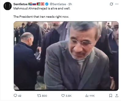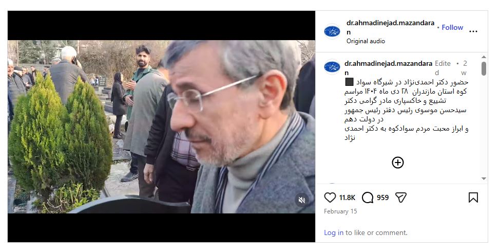 An X account posted the video with the Farsi caption, “Ahmadinejad is in good health and well-being and visited the Martyrs cemetery this afternoon.”