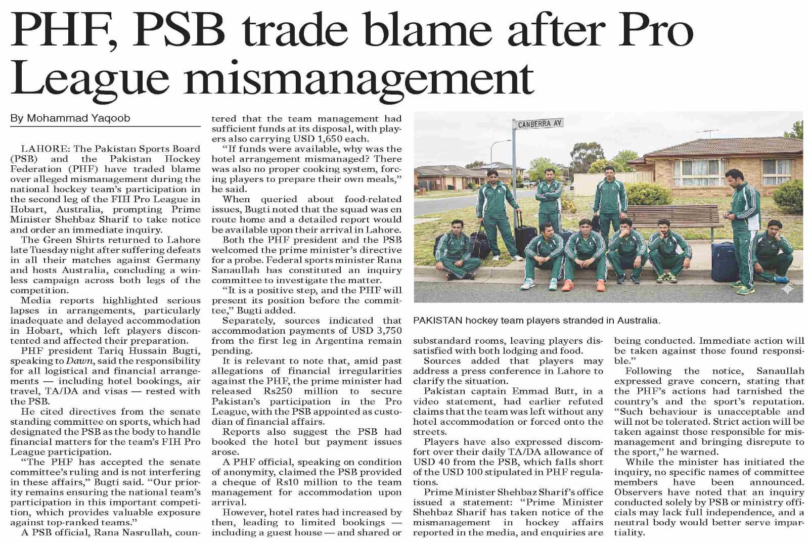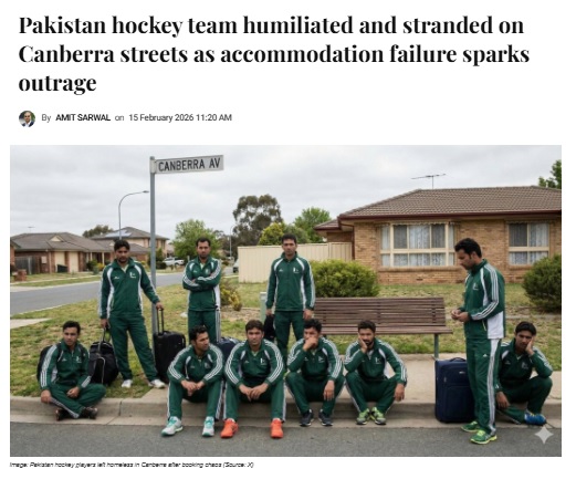 The Australia Today, an online news portal, published a news report on Feb 15 titled, “Pakistan hockey team humiliated and stranded on Canberra streets as accommodation failure sparks outrage.”